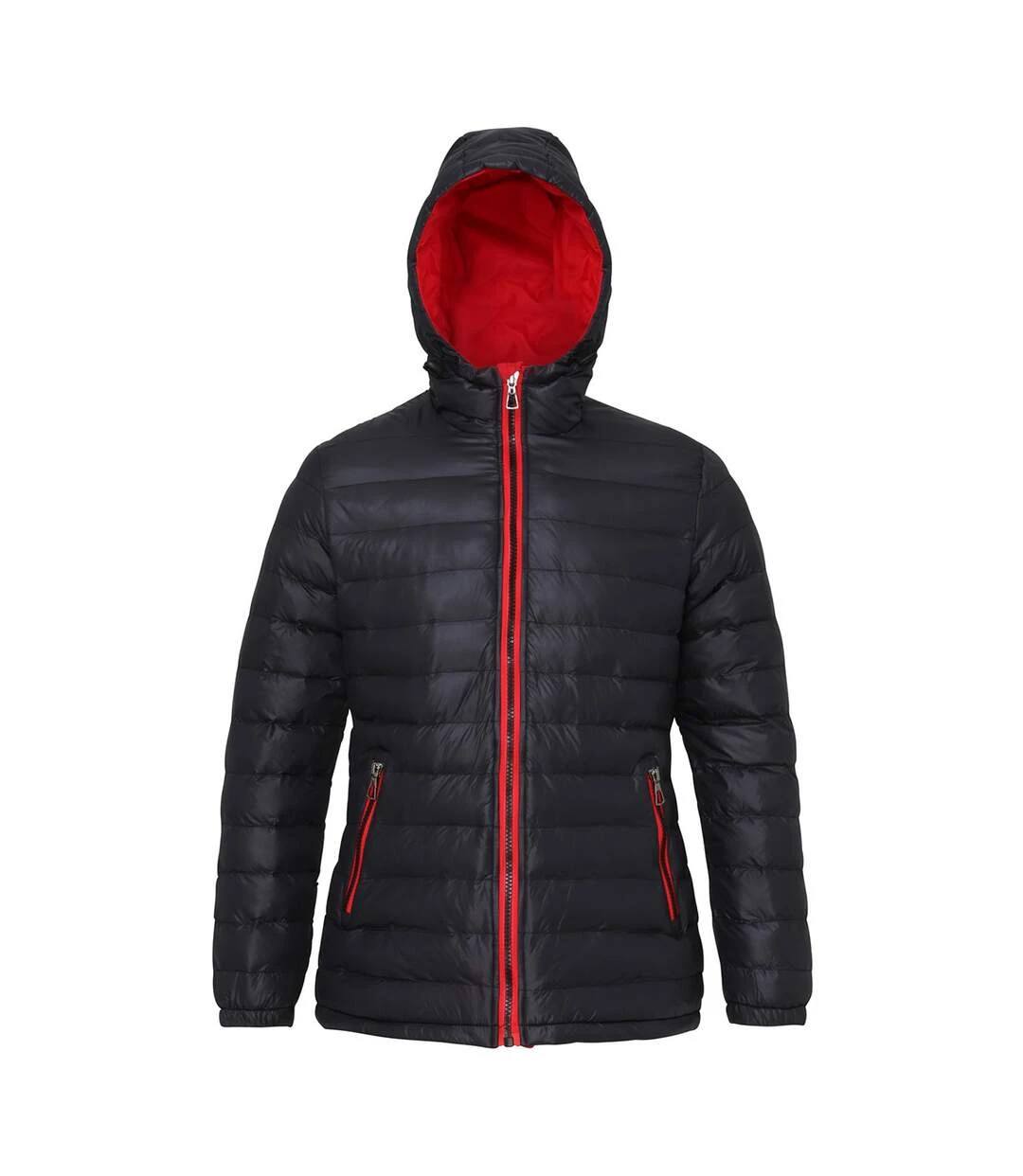 2786 Womens/Ladies Hooded Water & Wind Resistant Padded Jacket (Black/Red)