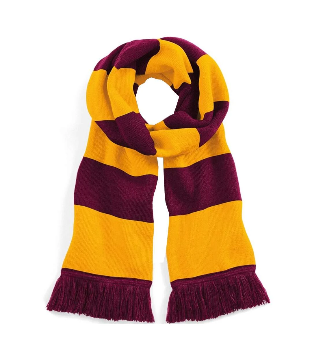 Beechfield Varsity Unisex Winter Scarf (Double Layer Knit) (Burgundy/Gold) (One Size)