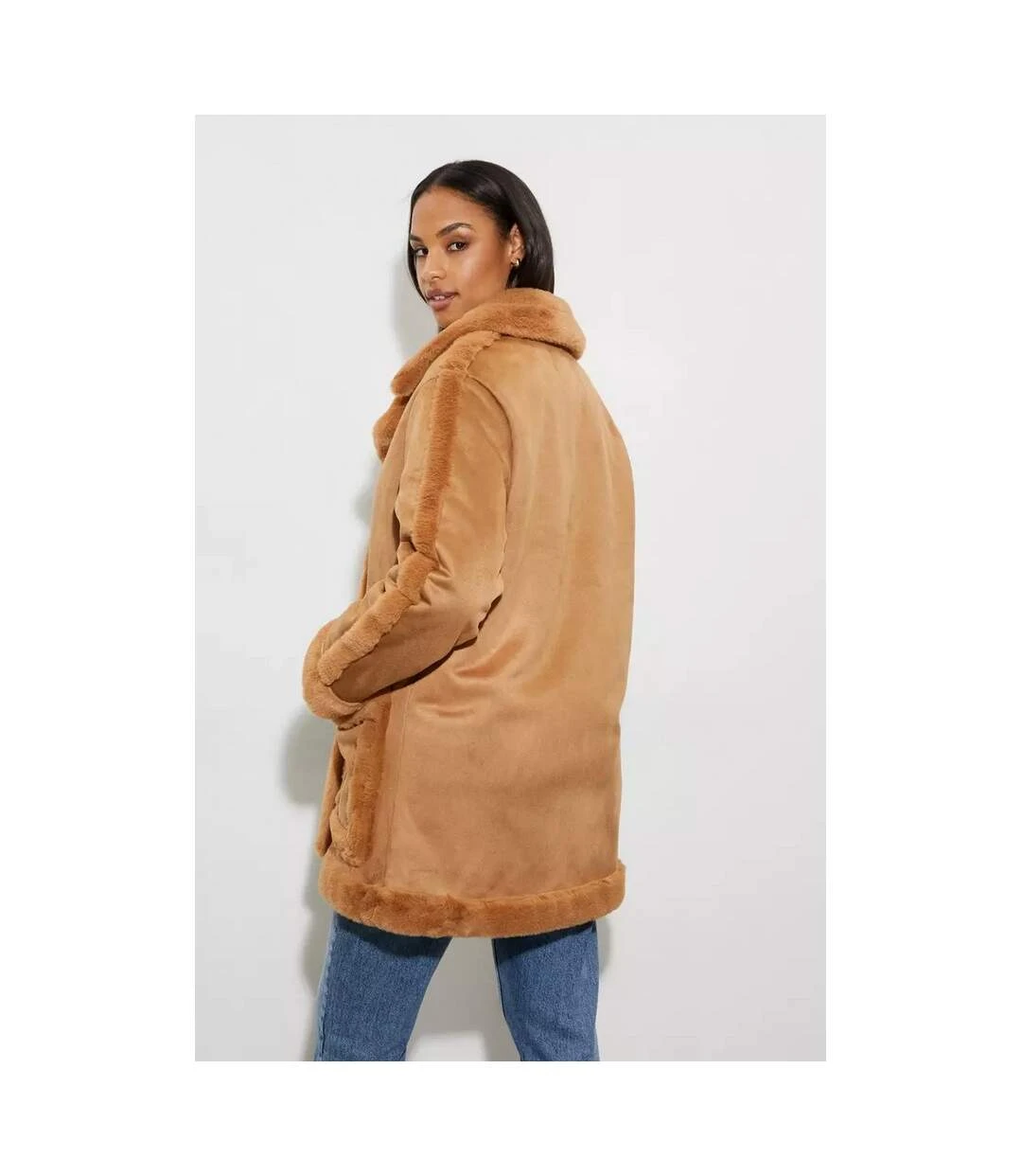 Dorothy Perkins Womens/Ladies Luxe Faux Fur Trim Suedette Coat (Toffee)