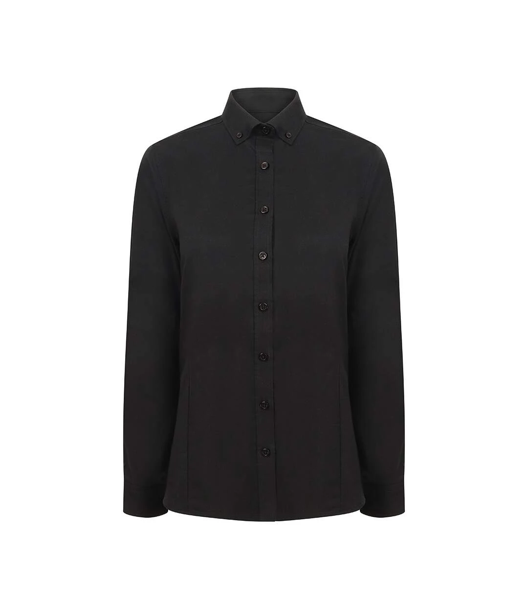 Henbury Womens/Ladies Modern Long Sleeve Oxford Shirt (Black)