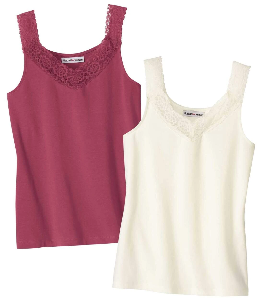 Pack Of 2 Women’s Lace Tank Tops – Pink Off-White