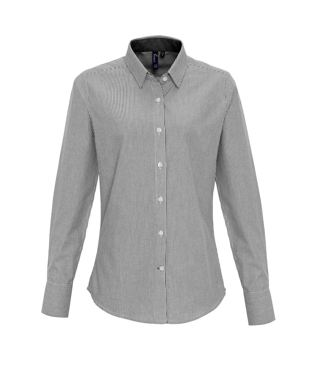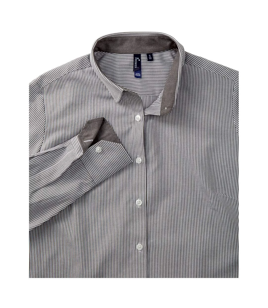 Premier® Premier Womens/Ladies Cotton Rich Oxford Stripe Blouse (White/Gray)