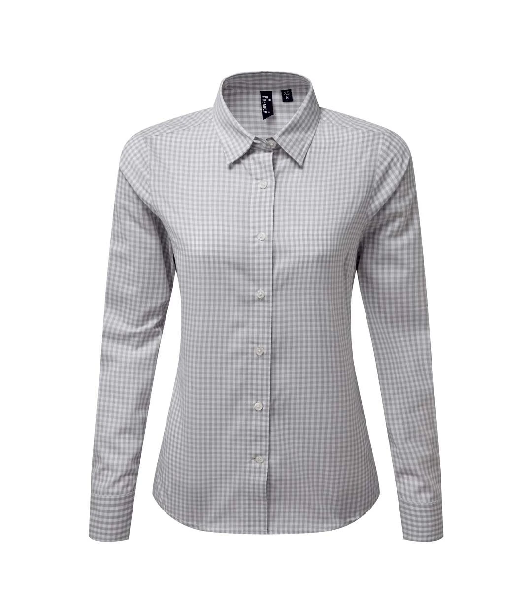 Premier® Premier Womens/Ladies Maxton Check Long Sleeve Shirt (Silver/White)