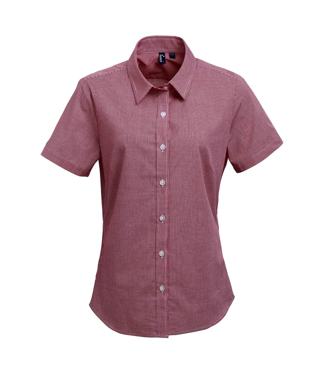 Premier® Premier Womens/Ladies Microcheck Short Sleeve Cotton Shirt (Red/White)