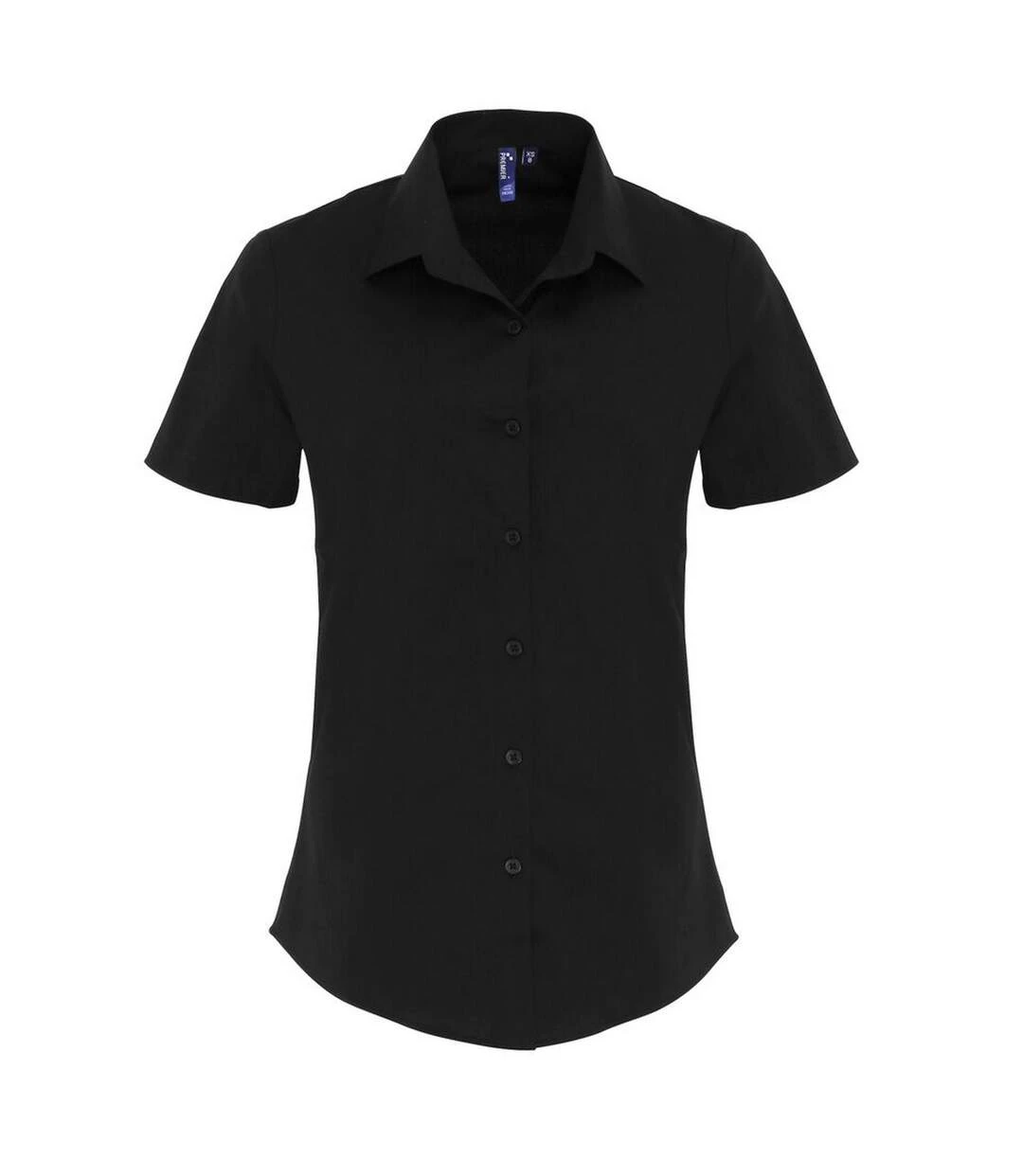 Premier® Premier Womens/Ladies Stretch Fit Poplin Short Sleeve Blouse (Black)