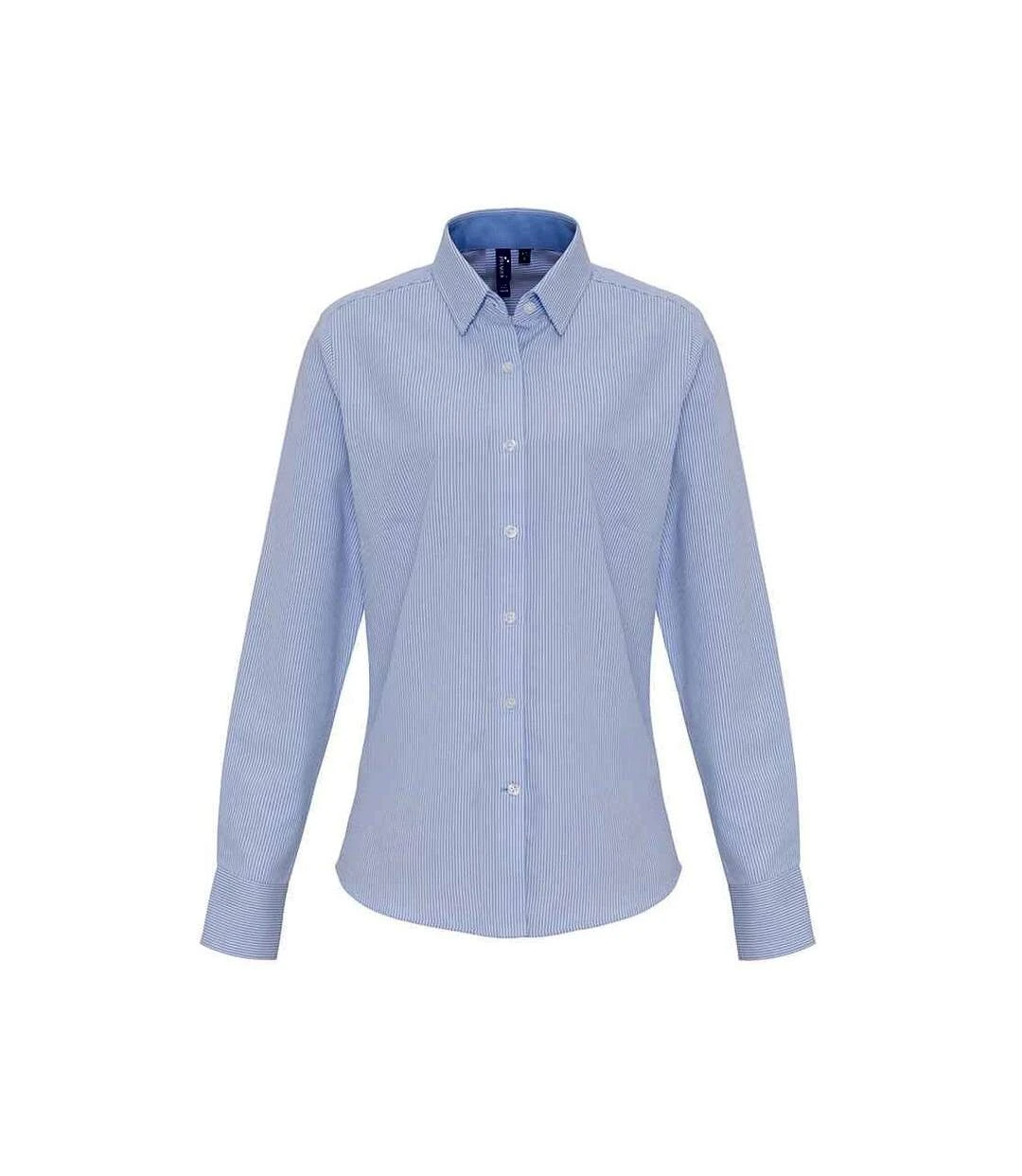 Premier® Premier Womens/Ladies Striped Oxford Long-Sleeved Formal Shirt (White/Oxford Blue)