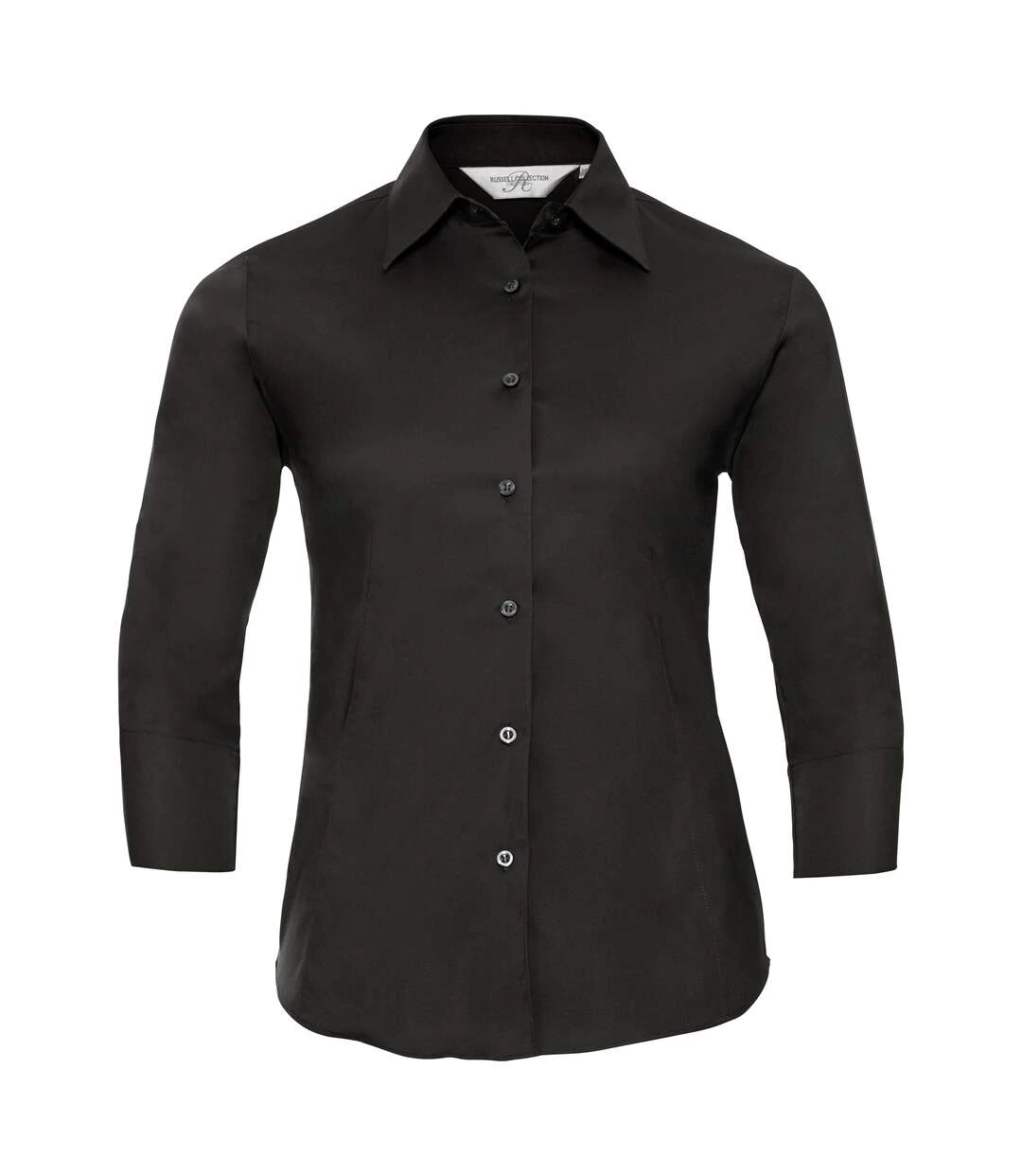 Russell Collection Ladies/Womens 3/4 Sleeve Easy Care Fitted Shirt (Black)