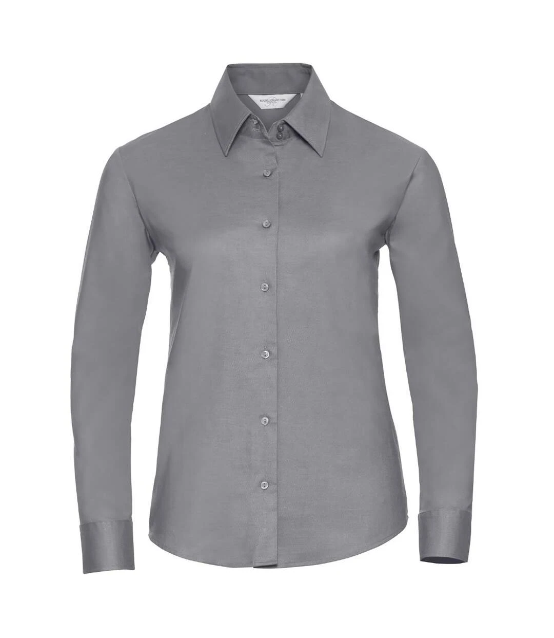 Russell Collection Ladies/Womens Long Sleeve Easy Care Oxford Shirt (Silver)