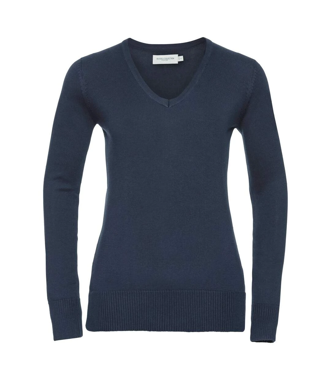Russell Collection Ladies/Womens V-Neck Knitted Pullover Sweatshirt (French Navy)