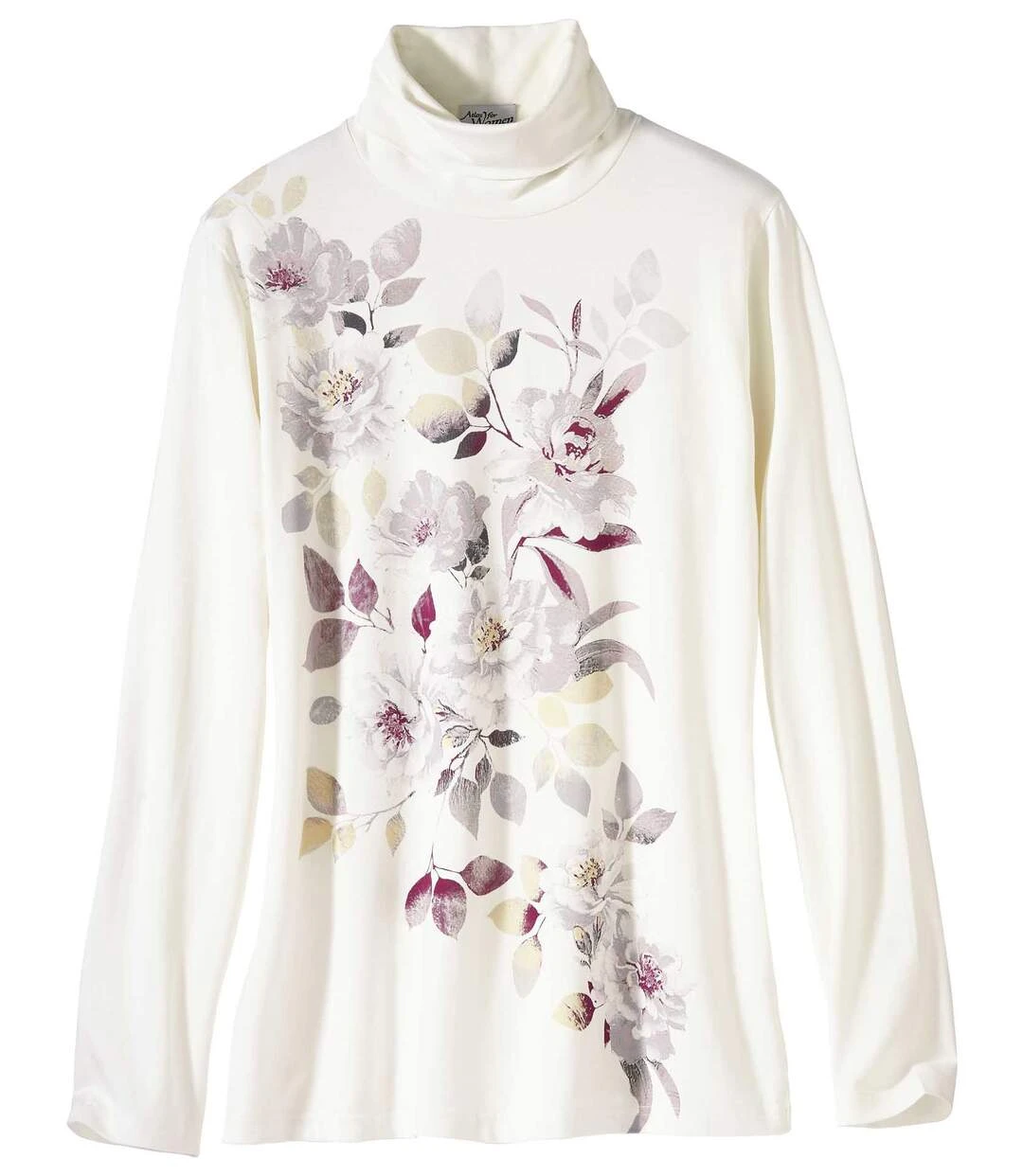 Women’s Floral Turtleneck Top – Off-White
