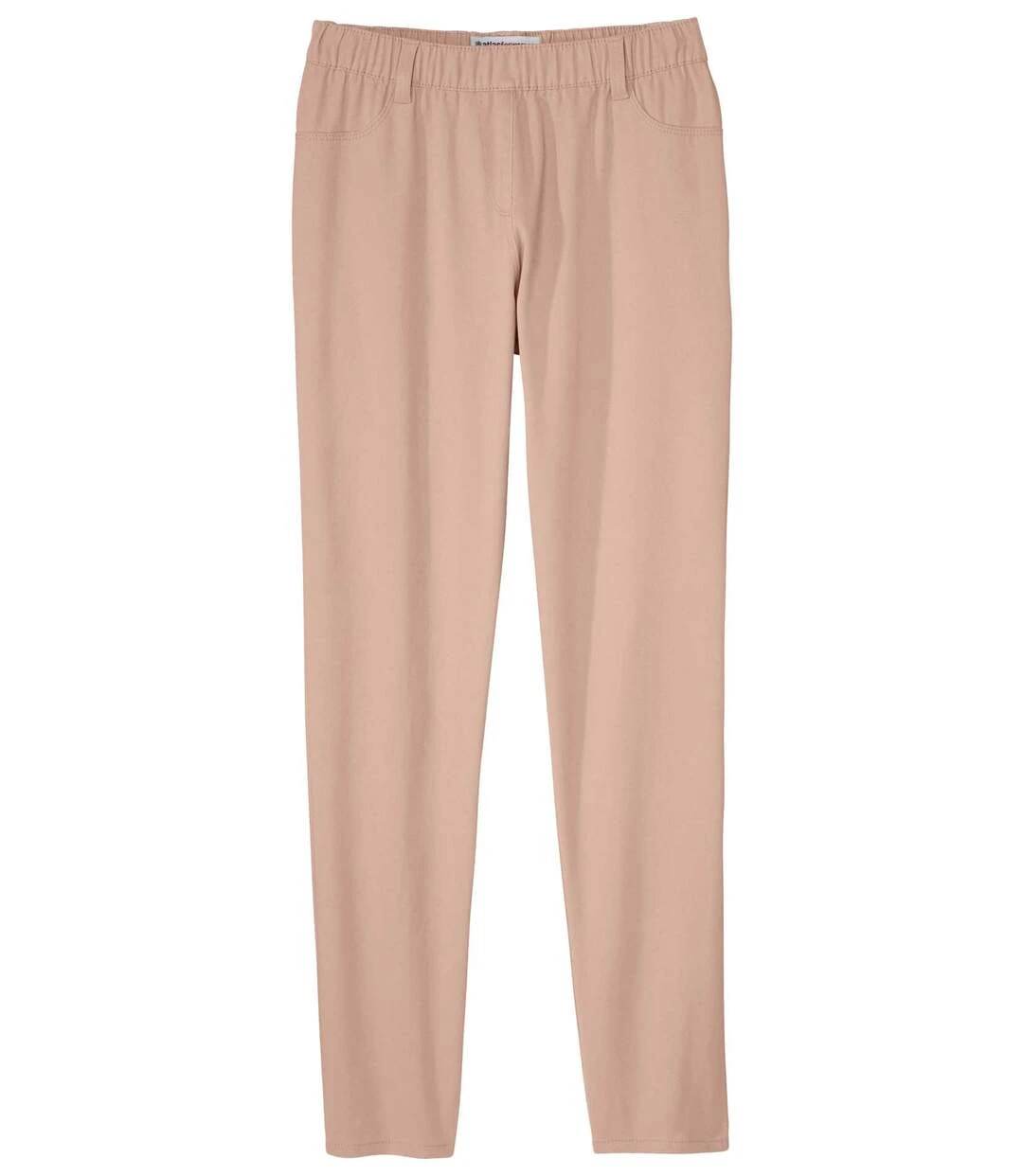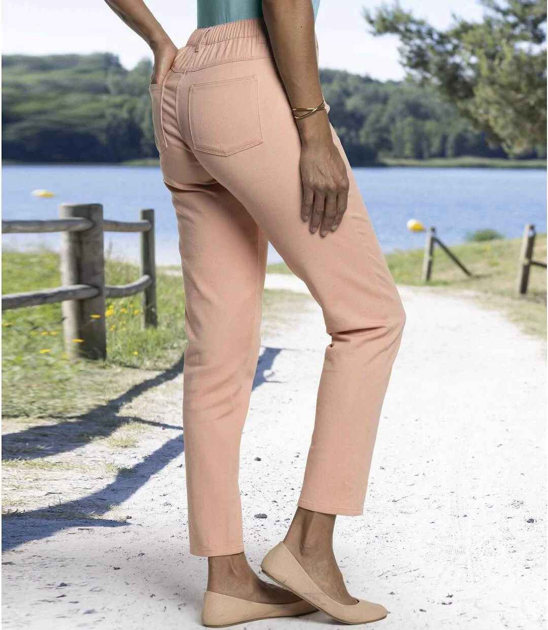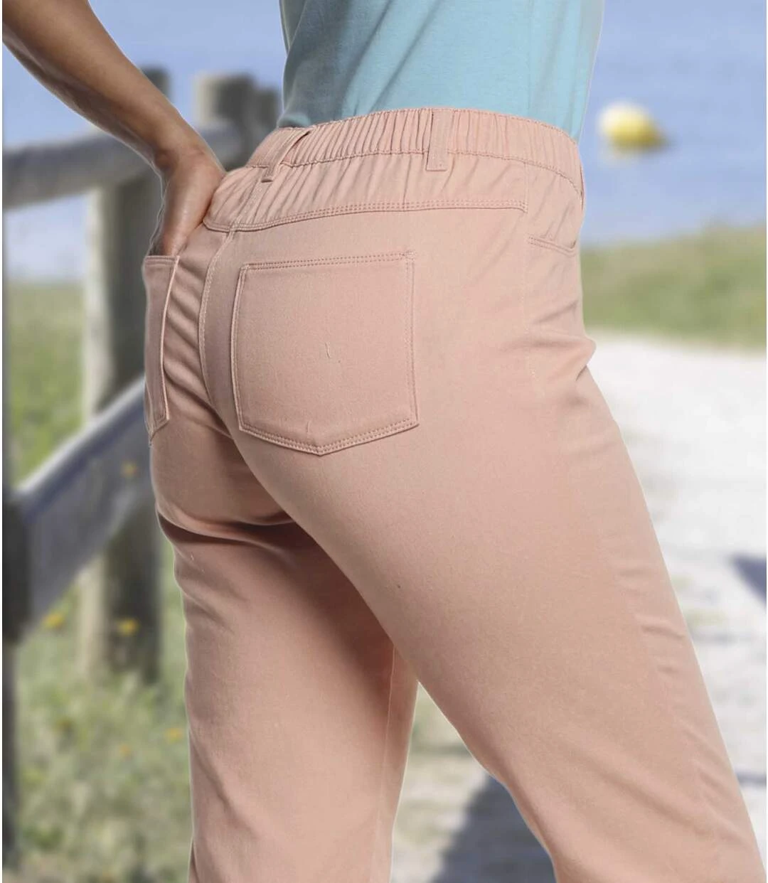 Opt for these ultra-comfortable stretchy pants this season! They feature a practical elasticated waistband with belt loops, and are made from hard-wearing stretch twill (approx. 300 g/m²) in a pastel tone. They also have a faux fly and 2 decorative stitched rounded pockets on the front, with 2 genuine patch pockets on the back. 98% cotton, 2% elastane. Inner leg: approx. 28.7 in/73 cm, hem: approx. 6.3 in/16 cm for CA size 8-10. Machine wash at 30°C. Colour: pale pink / Ref.: ZP207