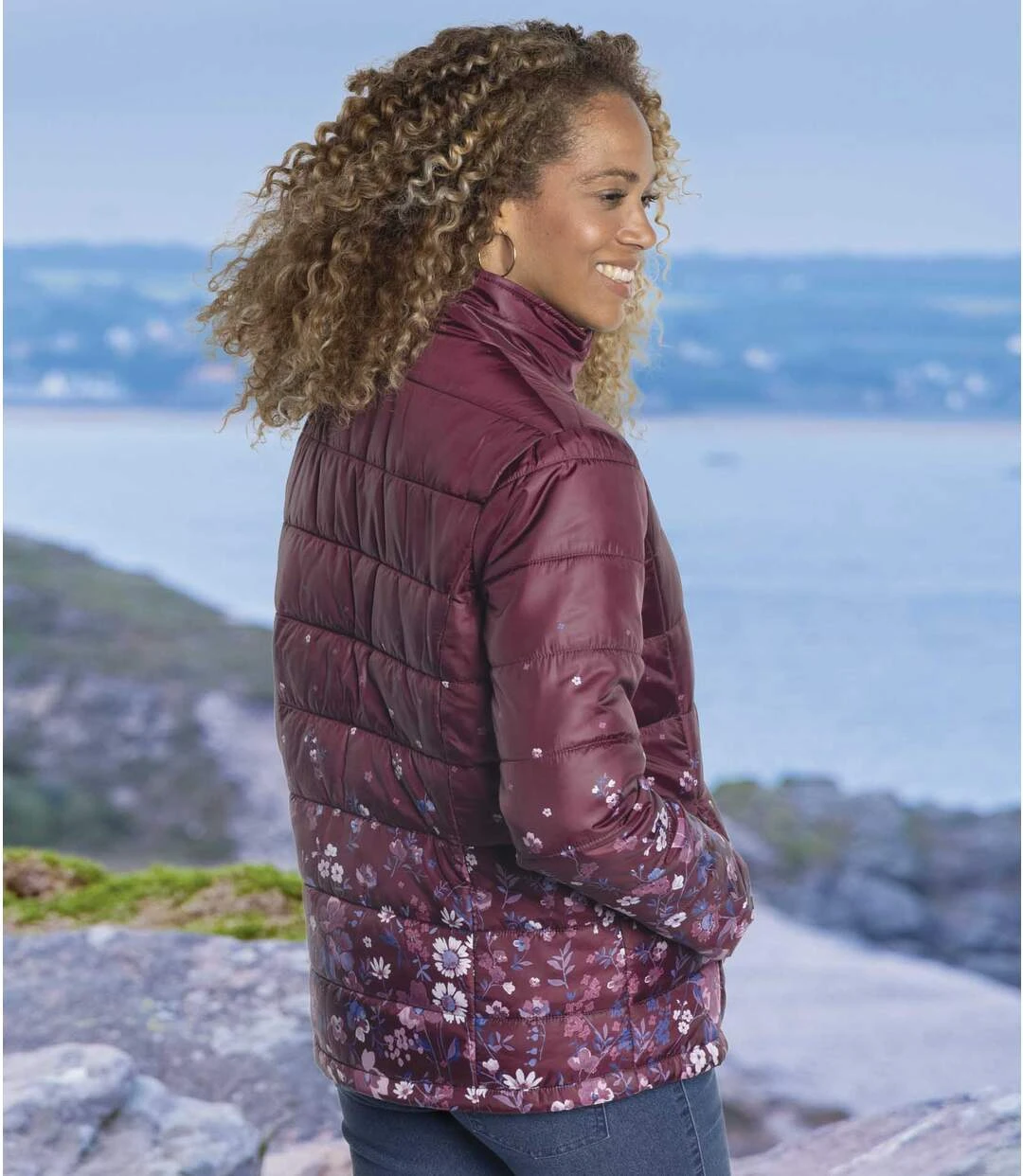 You’ll love this original zip-up padded jacket with its wildflower prints. Water-repellent and warmly quilted (approx. 270 g/m²), it is practical thanks to its 2 zip-up pockets in the princess panels. A stylish and feminine mid-season design! 100% polyester. Back length: approx. 28 in/71 cm for CA size 8-10. Machine wash at 30°C. Colour: plum / Ref.: ZP307